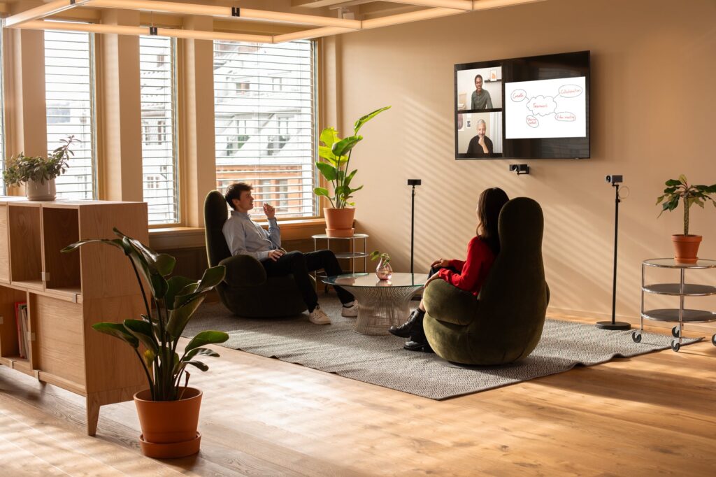 The Norwegian AI camera maker’s Chief Design Officer, Knut Helge Teppan, shares, “In video calls, it’s often challenging to pick up crucial social cues like gestures and expressions. To solve this, we drew inspiration from TV production principles. Working closely with a professional TV production team, we learned about camera techniques, framing, rhythm, and pacing. We then adapted these methods to enhance the interactivity of hybrid collaboration.”