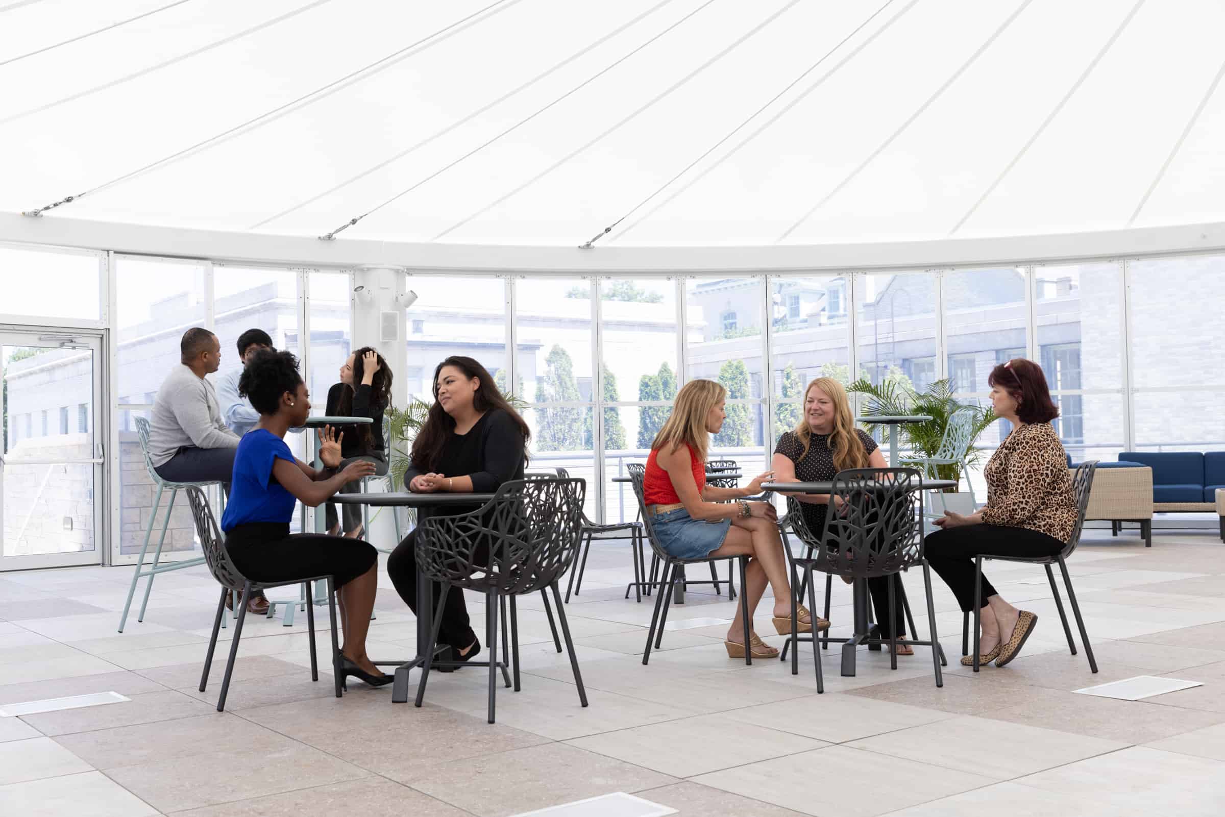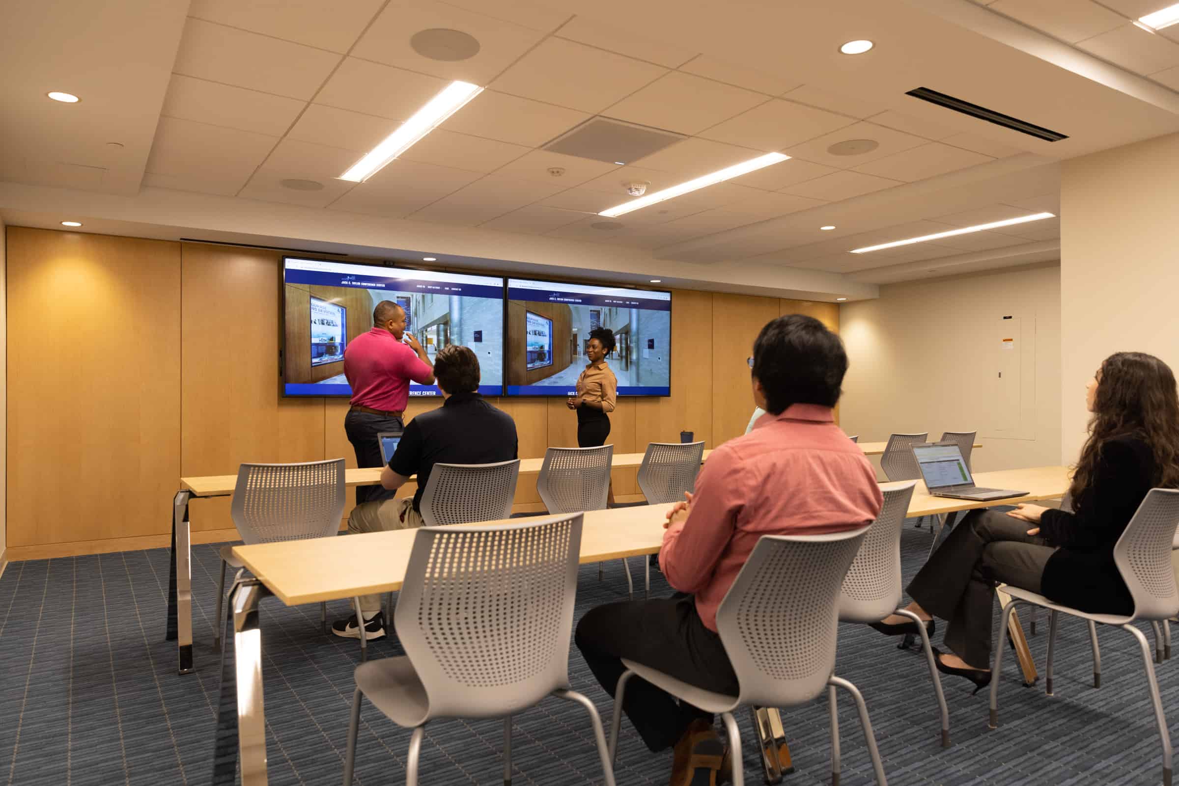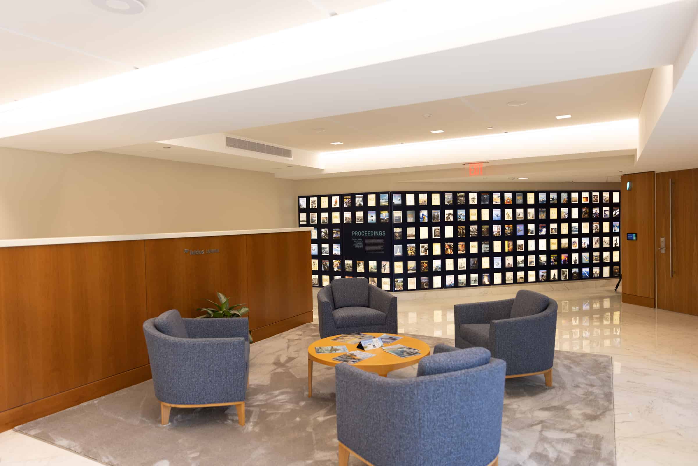 This vision included: a modern auditorium experience with immersive visuals and sound, an interactive space for events and receptions, and digital displays to complement the facility’s atmosphere and inform guests and staff, secure AV systems for classified presentations, and an easy-to-use studio space for recording and streaming.