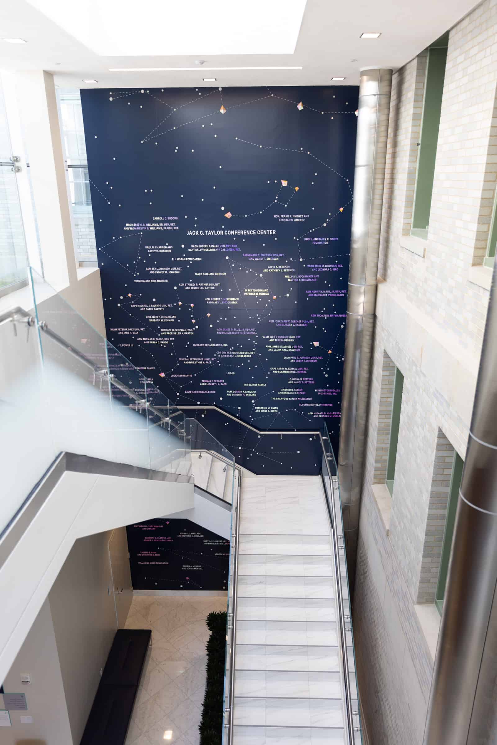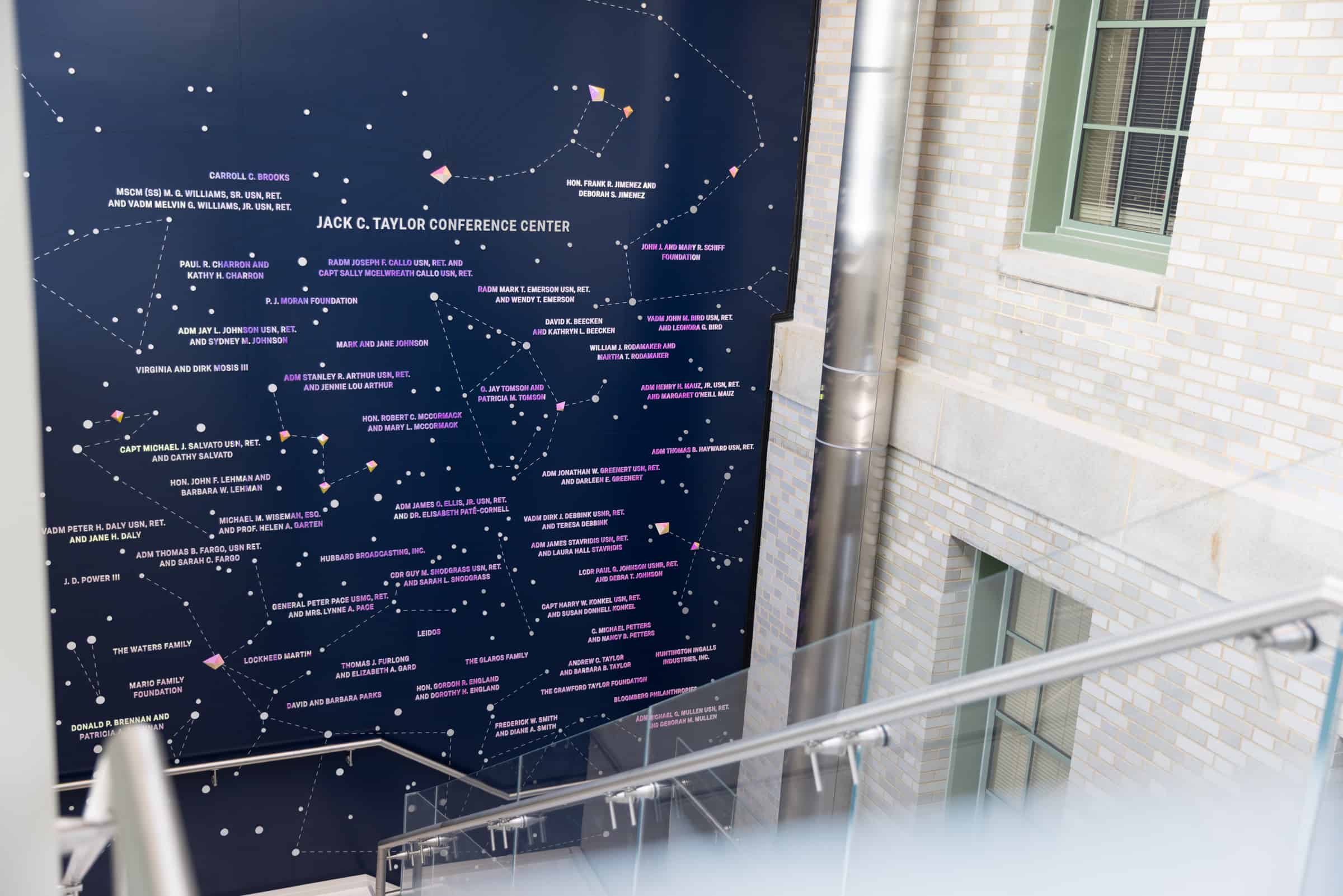 Corporate and individual donors provided funding for the construction and new technology. Visitors can see them all showcased on the wall of donors, which illustrates the celestial map on the night the U.S. Naval Institute was founded in 1873. Mixed among the stars are key founding donors. “This wall is both a donor a wall, and in my view, a piece of art,” said Daly.